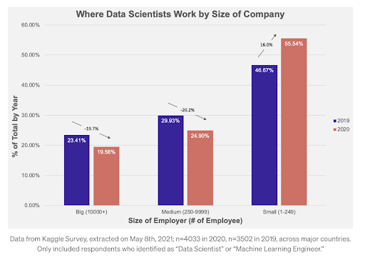 In a recent Medium blog post authored by Ian Xao, he noted that “data science teams at big companies are facing a serious retention problem” as scientists are quitting enterprise companies for new jobs at startups.